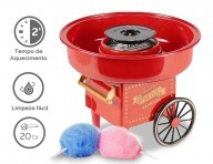 Maquina de fabricación de algodón de azúcar -Potencia:500W -Capacidad: 20 gr -Sistema de calefacción -Material: plástico c/ diseño carrito -Color: Rojo -Voltaje: 110V/60Hz -Voltaje: 220/50˜60Hz
